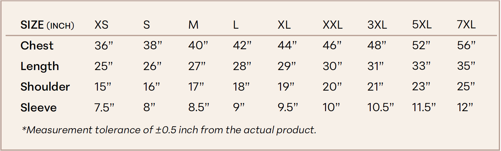 XS - 3XL, 5XL, 7XL | 180 gsm